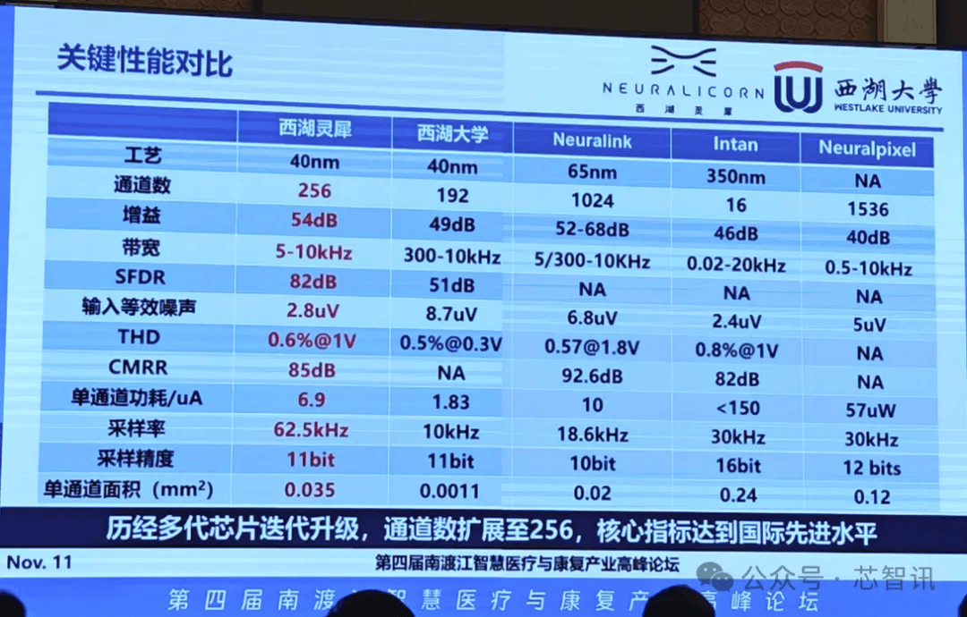 △西湖灵犀科技自研的脑机接口芯片与同类竞品对比