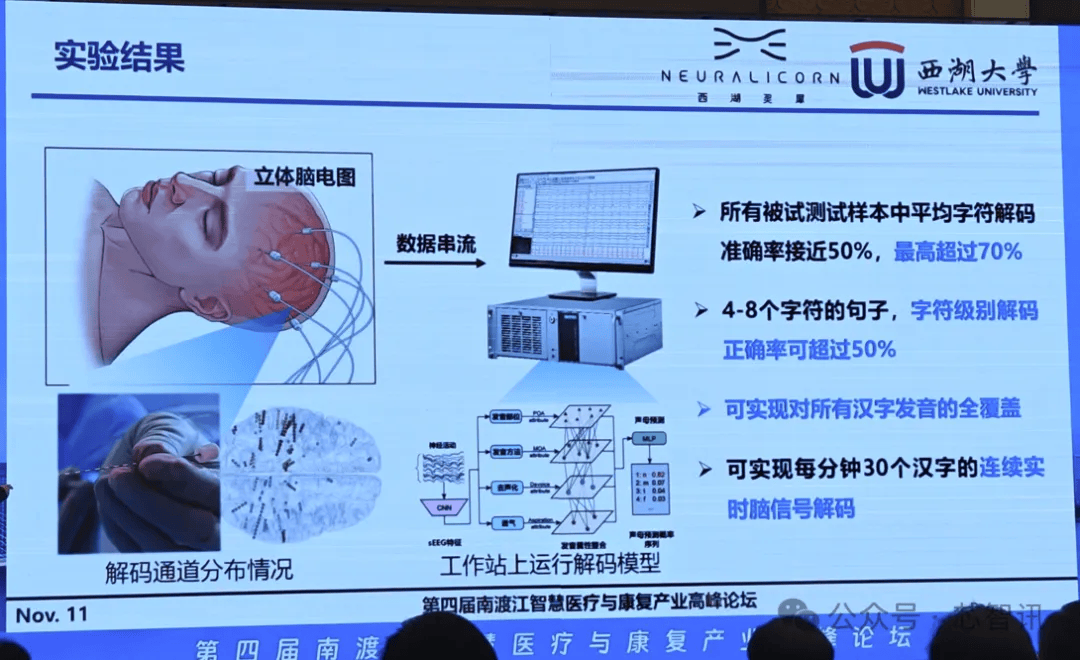 2025年11月11日正规配资平台app,由芯原股份主办的“第四届南渡江智慧医疗及康复产业高峰论坛”于今日在海口正式开幕。杭州西湖灵犀科技有限公司(以下简称“西湖灵犀科技”)的联合创始人、西湖大学研究员杨杰博士,介绍了西湖灵犀科技在高通量脑机接口芯片与汉语神经解码方面的最新突破。