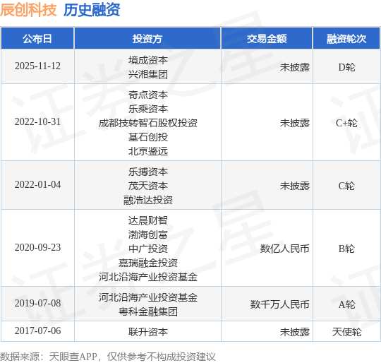 配资网站排名第一 【投融资动态】辰创科技D轮融资,投资方为境成资本、兴湘集团等 配资网站排名第一 来源:元鼎证券 网站:元鼎证券_元鼎证券官网入口_期货配资官网 日期:2025-11-20 05:06:57 查看:56
