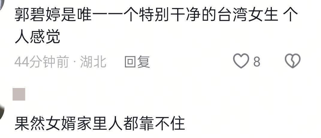 还有的网友觉得郭爸爸有3个女儿,凭什么一直都是郭碧婷又出钱又出力,另外两个女儿连面都没露过?这不就是趴在郭碧婷身上吸血吗?