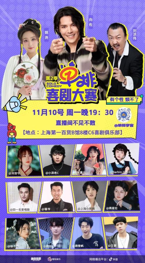 大皖新闻讯 11月10日,备受瞩目的喜剧竞演综艺《单排喜剧大赛》第二季将于今晚19:30上线开播。演员向佐跨界惊喜加盟,与第一季人气选手姚尧、知名喜剧导演刘洪伟共同开启全新赛程。